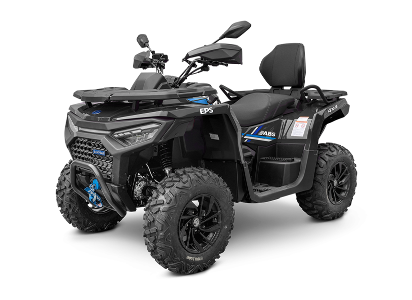 Elektrický navijak 3000 lbs s nylonovým lanom, elektrický posilňovač riadenia EPS, homologované ťažné zariadenie, 12" dizajnové ALU kolesá, značkové 25" pneumatiky Bulldog, kompozitné nosiče vpredu a vzadu, kryty páčok a rúk, Full-LED osvetlenie, plnofarebný 7" TFT displej, 12 V zásuvka, USB port, samostatné vyvýšené sedadlo spolujazdca s opierkou chrbta, madlá s nešmykľavým povrchom